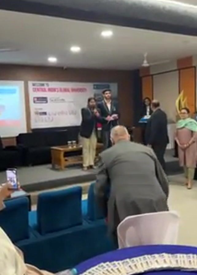 The video captures a scene at Central India's Global University, likely an event or ceremony taking place in a room