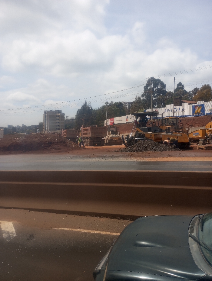 - "The image displays an active road construction site in Gitaru ward, Kenya, viewed from a stationary dark-colored vehicle, whose hood and windshield are visible in the lower right" by FM-iEAFO2, licensed under CC BY 4.0