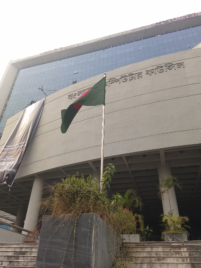 - "A low-angle shot shows the Bangladesh Computer Council building under a cloudy sky" by FM-nGXIE2, licensed under CC BY 4.0