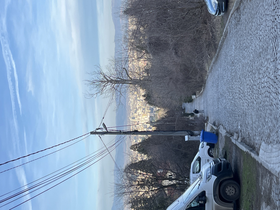 - "The image displays an elevated perspective looking down a steep, descending cobblestone street towards the city of Sofia, Bulgaria, originating from the peripheral residential areas on the slopes of Vitosha mountain, likely within the Boyana or Dragalevtsi neighborhoods" by FM-F32v12, licensed under CC BY 4.0