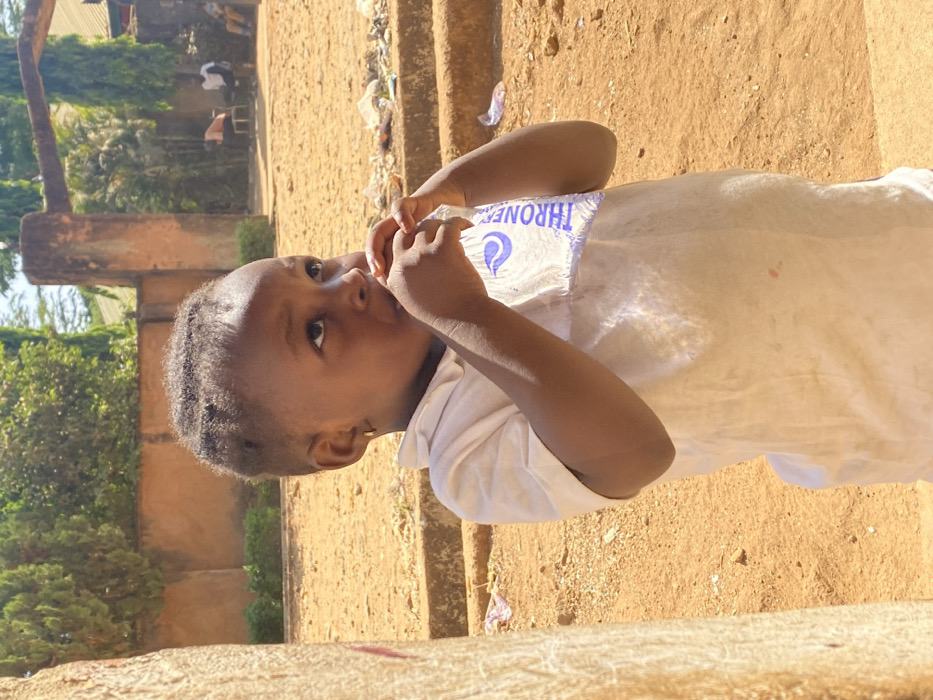 - "A young child, approximately 3-5 years old, with dark skin, short dark hair styled with braids on the crown and shaved sides, stands outdoors in Maigizo, Nigeria, under bright daylight" by FM-v68Gl1, licensed under CC BY 4.0