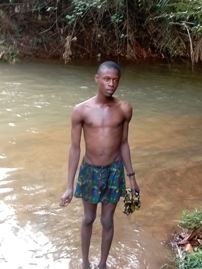 - "A young, bare-chested male stands in a shallow body of murky, light brown water at a location in the city of Igbenu, Nigeria" by FM-m0BBE2, licensed under CC BY 4.0