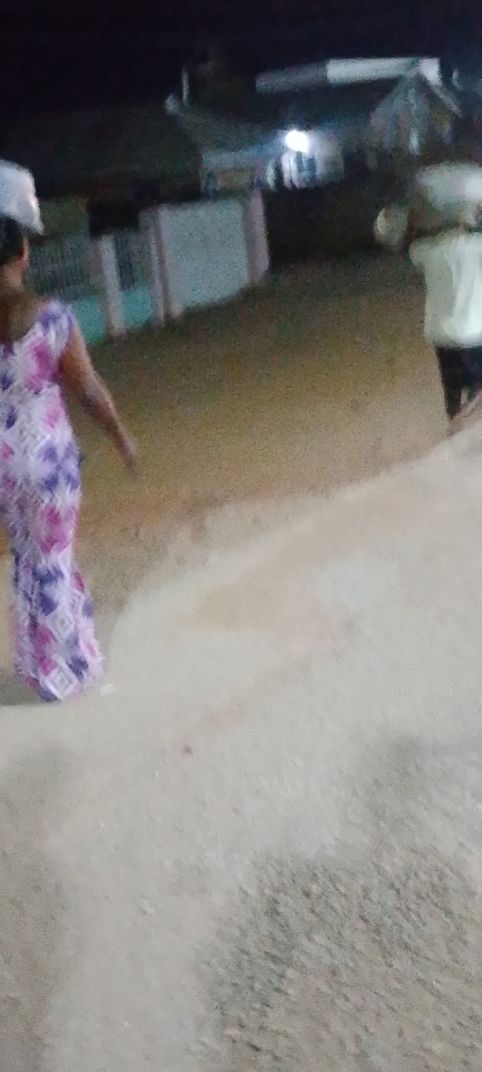 The image depicts a nighttime scene on an unpaved road in Zango-ndaji, Nigeria