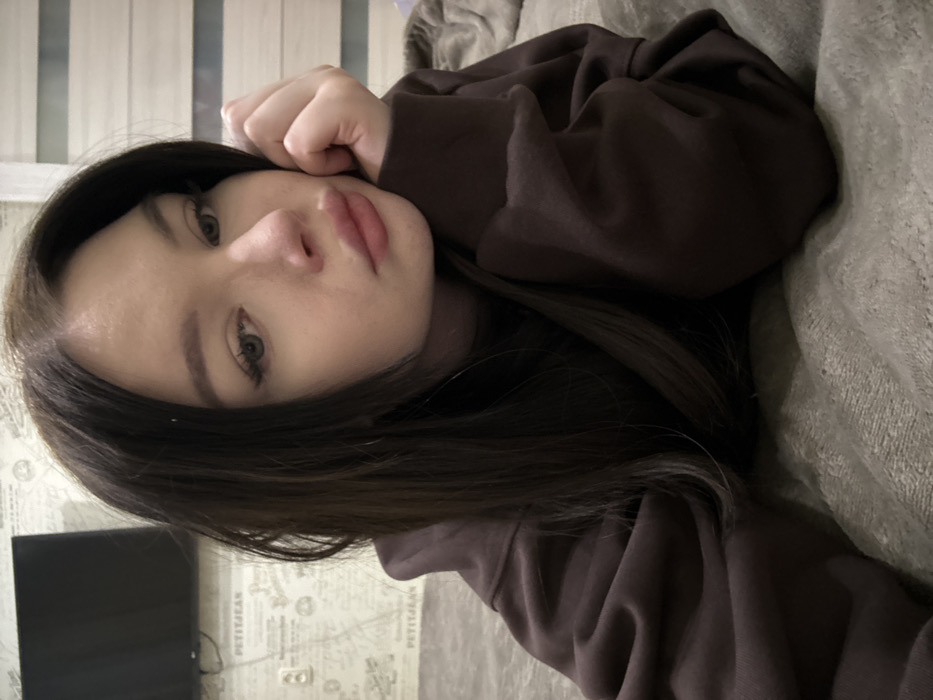 - "A young female subject, characterized by long, dark brown hair and a pale complexion with applied makeup, is depicted in a close-up, chest-up perspective, resting on a textured grey surface, likely a bed or sofa" by FM-q7qAF2, licensed under CC BY 4.0