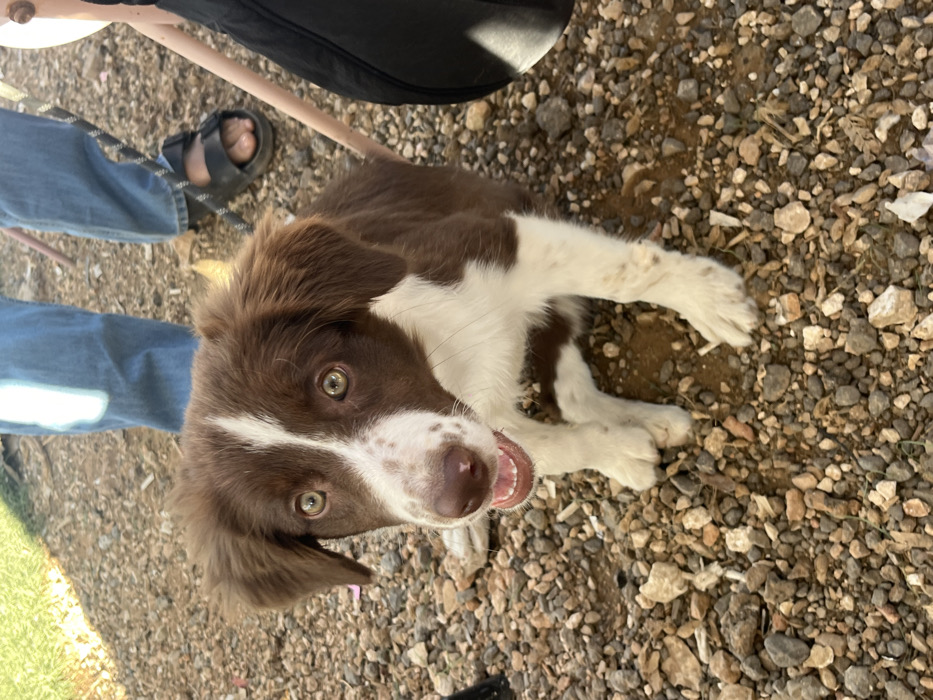 - "This image, taken in Kfar Ruth, Israel, features a brown and white puppy sitting on a gravel and dirt ground" by FM-iEctz2, licensed under CC BY 4.0