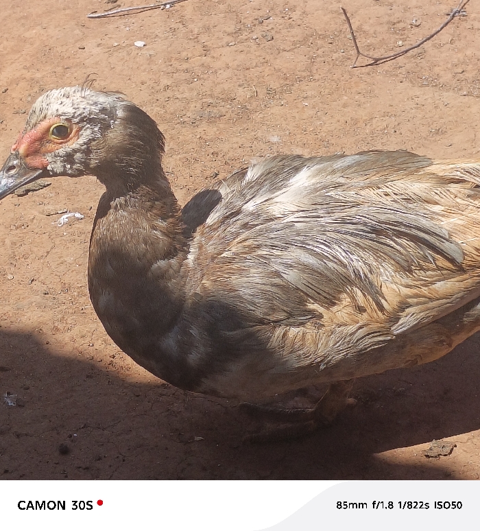 - "A Muscovy duck is depicted standing on reddish-brown, dry soil under strong sunlight in the city of Kasunguni, Kenya" by FM-5CM7k1, licensed under CC BY 4.0