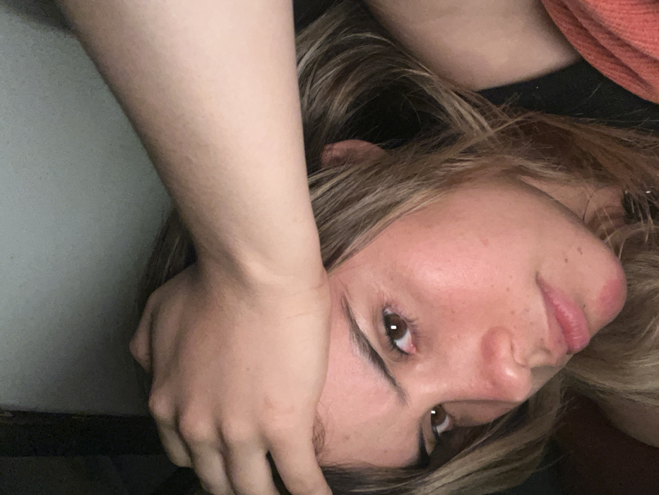 - "A woman's face is tilted, resting against a fair-skinned arm and hand, with blonde hair framing her features" by FM-o4ROx2, licensed under CC BY 4.0