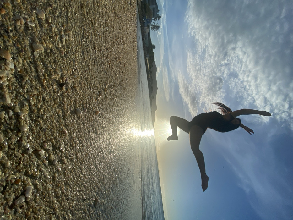 - "A low-angle photograph depicts a female individual in mid-air, captured against the backdrop of a setting or rising sun over the ocean in Juan Griego, Venezuela" by FM-GA5i52, licensed under CC BY 4.0