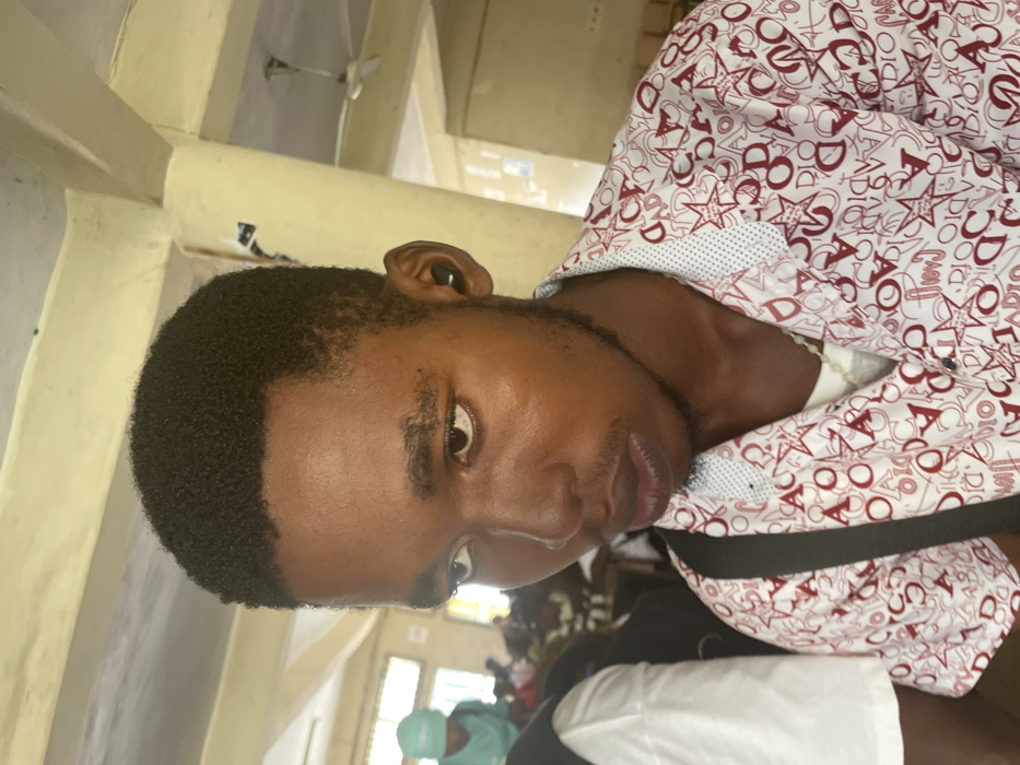 An indoor scene in Ihiagwa, Nigeria, features a young Black male in the foreground, facing slightly left and looking downward