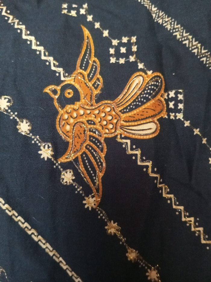 - "Dark blue fabric features a stylized bird motif" by FM-WQFBv2, licensed under CC BY 4.0