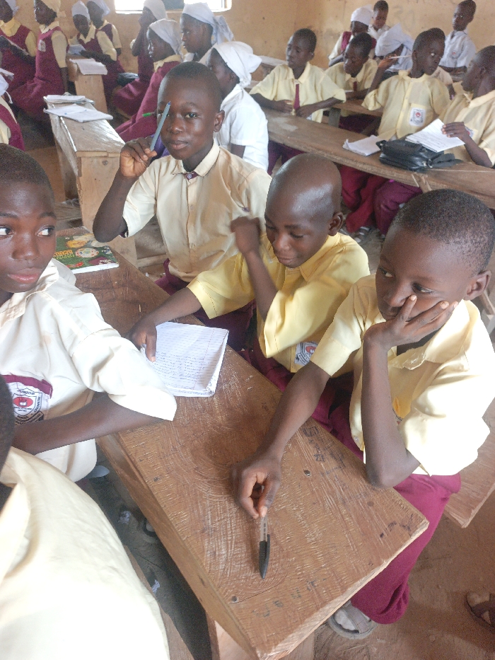 This image depicts a classroom scene within a school in Mada, Nigeria