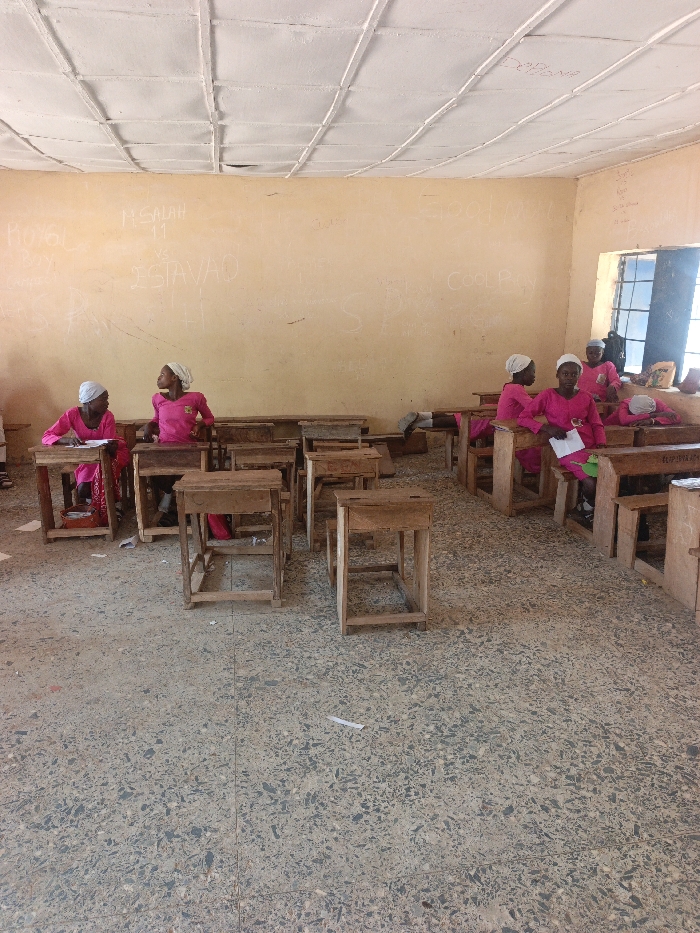 The image depicts the interior of a classroom located in Akwanga, Nigeria