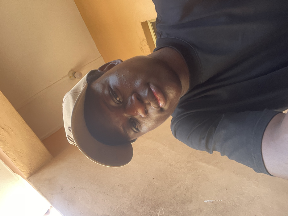 A selfie of a dark-skinned man wearing a beige baseball cap and a black T-shirt