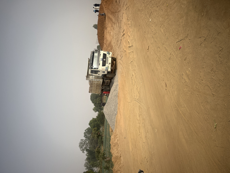 The scene depicts a material handling or construction area in Gyellesu, Nigeria
