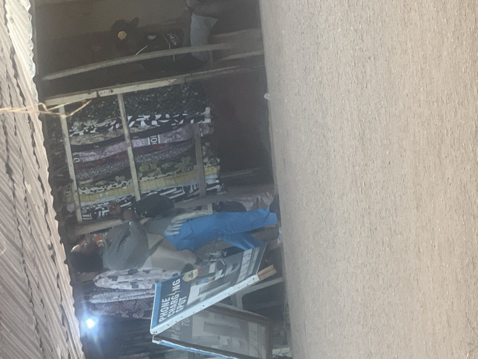 The image depicts an outdoor market scene in Sabon Tasha, Nigeria