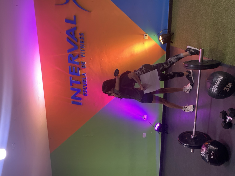 The image displays an indoor scene within "Interval Escuela de Fitness" in Quilmes, Argentina