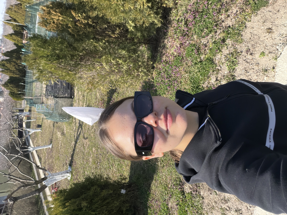 A selfie photograph, taken in Priseltsi, Bulgaria, shows a young female individual positioned in the lower-center of the frame