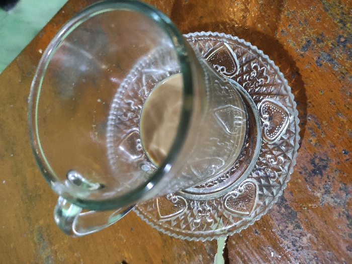 - "This image captures a close-up, high-angle view of a clear glass mug containing a residual amount of light brown liquid" by FM-sO6Wu2, licensed under CC BY 4.0
