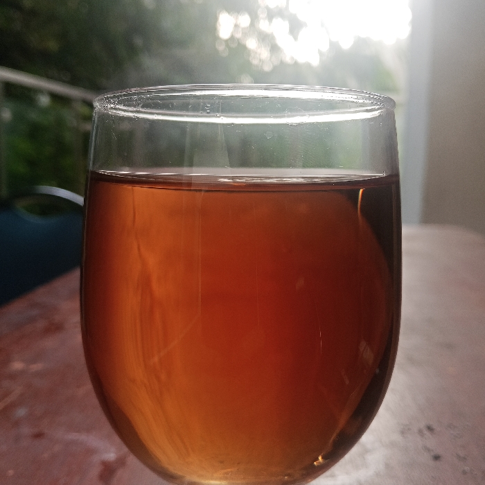 - "The image provides a forensic close-up of a clear glass holding a reddish-brown liquid, approximately two-thirds full, situated on a textured, light-brown surface consistent with wood or stone" by FM-31wQG2, licensed under CC BY 4.0