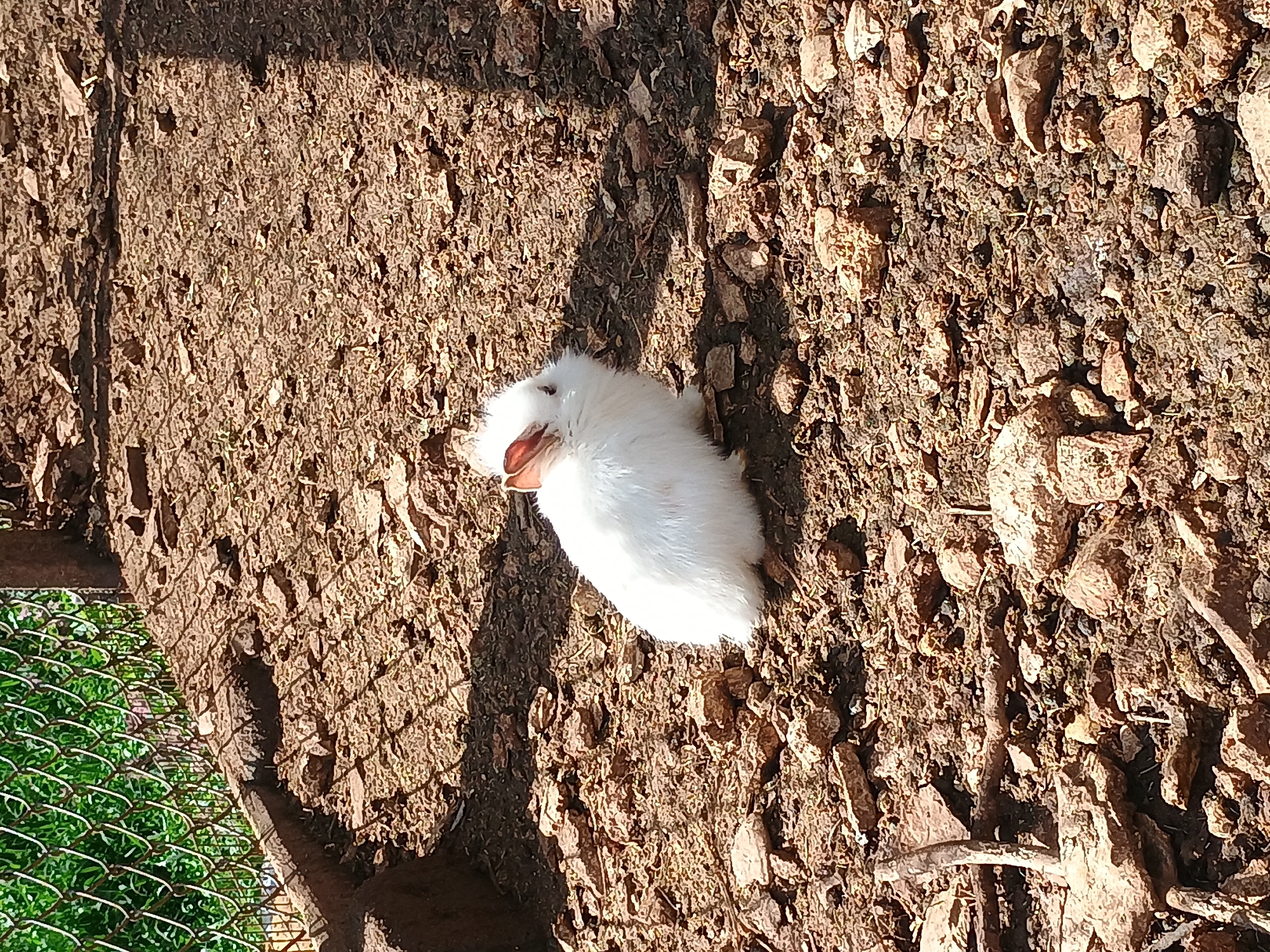 - "A white rabbit with brown ears is resting on a surface covered in wood chips and small stones" by FM-LHAN62, licensed under CC BY 4.0