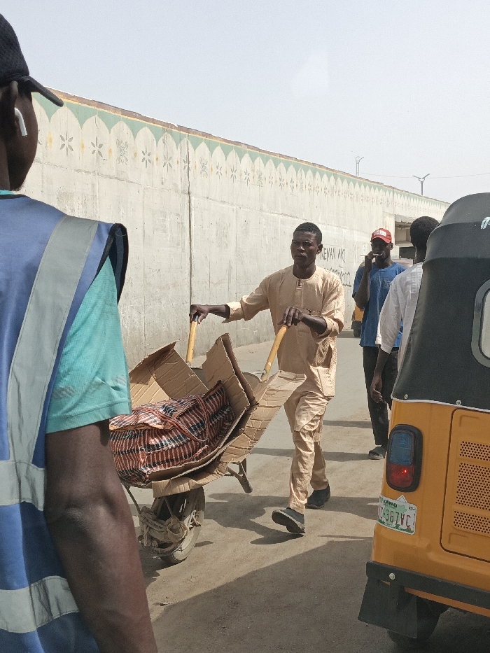 The image captures an outdoor street scene in Fagge C, Nigeria, under clear daylight conditions