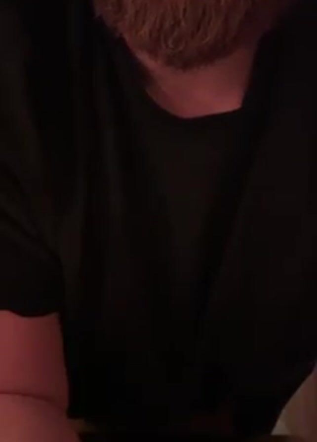 A man with a beard is shown from the chest up, looking down at the camera
