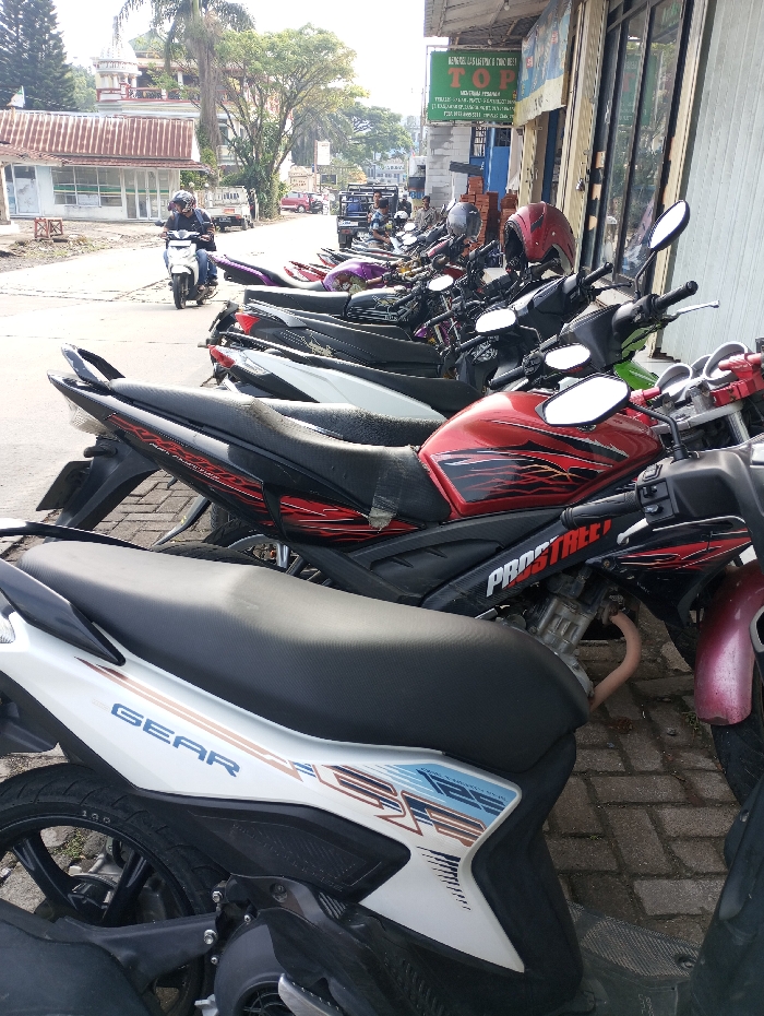 This image depicts a daytime street scene in Sindangjaya, Indonesia