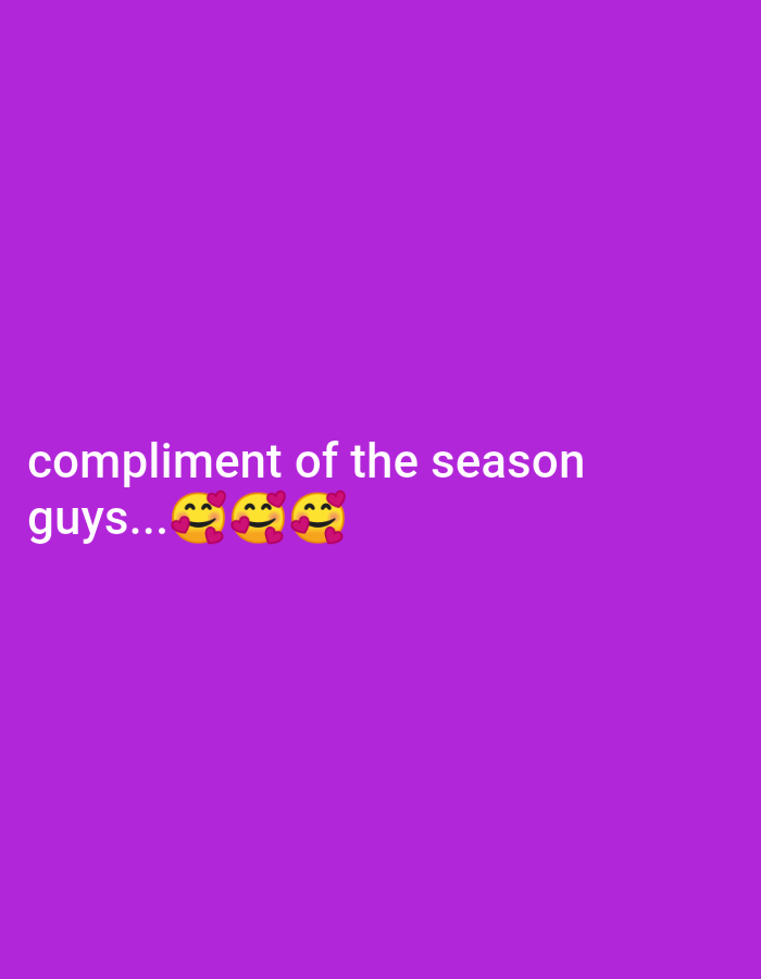 The image displays white text on a solid purple background. The text, located in the upper-left quadrant, reads "compliment of the season guys..." followed by three identical "smiling face with heart-eyes" emojis. No people, actions, or physical objects are visible other than the digital text and emojis. The environment is a uniform purple color field. The location is in the city of Unknown, Unknown.