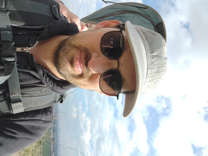 - "An adult male, wearing a light grey baseball cap, dark sunglasses, and a dark hooded sweatshirt with a dark backpack, is depicted in a selfie-style photograph" by FM-3Ip2o1, licensed under CC BY 4.0