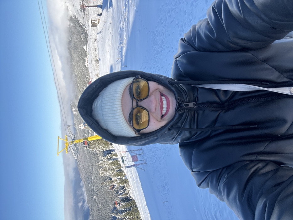 A young adult female is depicted in a close-up selfie taken at the Uludağ Ski Center, near Bursa, Turkey