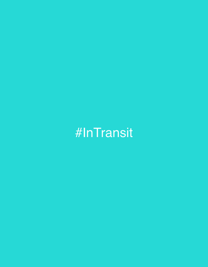 The image displays a uniform, solid teal background. Centered on this background is the white text "#InTransit" rendered in a sans-serif typeface. No discernible elements pertaining to a specific location within Budva, Montenegro, nor any people, subjects, additional objects, actions, interactions, or an external environment are present within the visual content of the image.