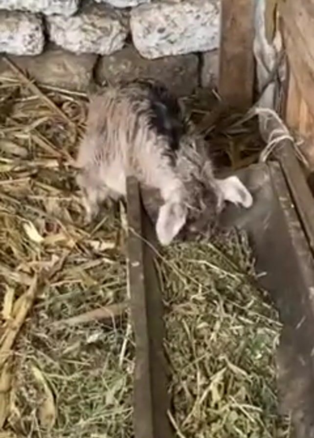 - "A small goat kid is eating hay from a trough inside a pen with a stone wall" by FM-GT7Sg2, licensed under CC BY 4.0