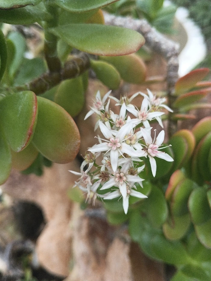- "A close-up photograph depicts a flowering Crassula ovata (jade plant) located in Matopos, Zimbabwe" by FM-cc7582, licensed under CC BY 4.0
