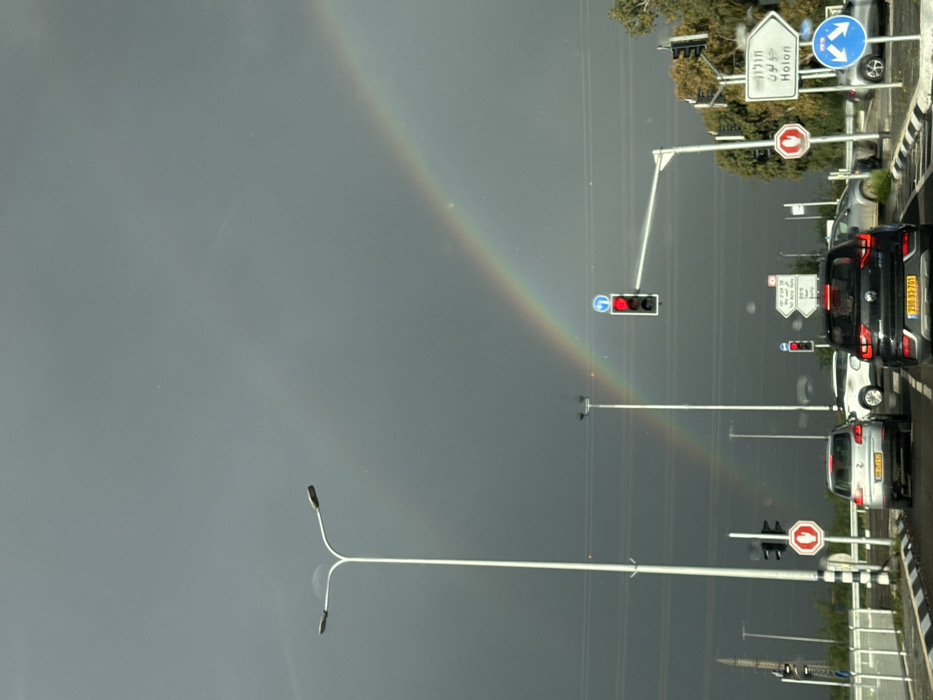 - "A rainbow arches across a gray sky above a roadside scene" by FM-Z81NG3, licensed under CC BY 4.0