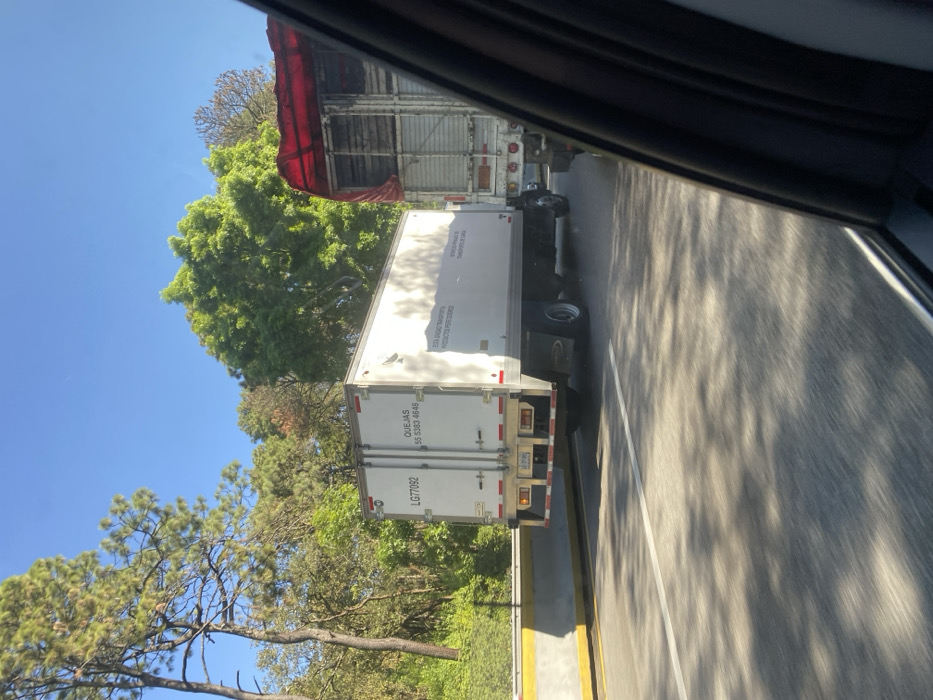 - "The image captures a view from inside a moving vehicle, showcasing two large trucks on a highway" by FM-TO6gh1, licensed under CC BY 4.0