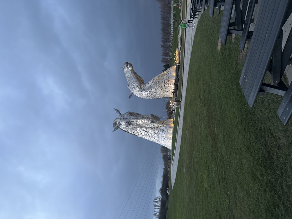- "The image displays the Kelpies, two large, illuminated metallic horse-head sculptures, situated within Helix Park in Falkirk, United Kingdom, under a dark, overcast sky" by FM-NoS4g1, licensed under CC BY 4.0