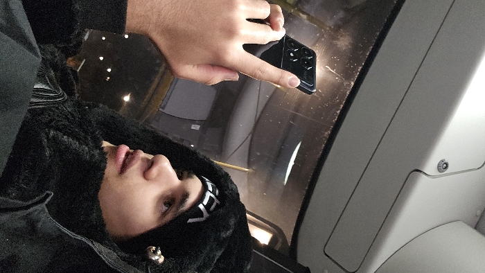 - "A person in a black hooded jacket and a black and white headband is seated inside a vehicle, possibly a car or bus" by FM-pDwWG2, licensed under CC BY 4.0