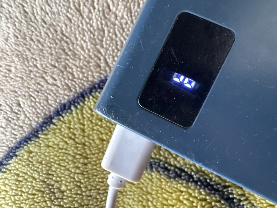 - "The image displays a dark blue, rectangular electronic device, consistent with a power bank, positioned on a textured surface" by FM-9Hpu83, licensed under CC BY 4.0