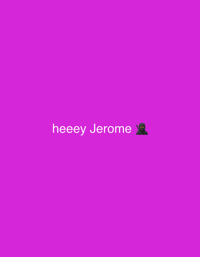 solid purple background with the text "heeey Jerome" in white, located near the center