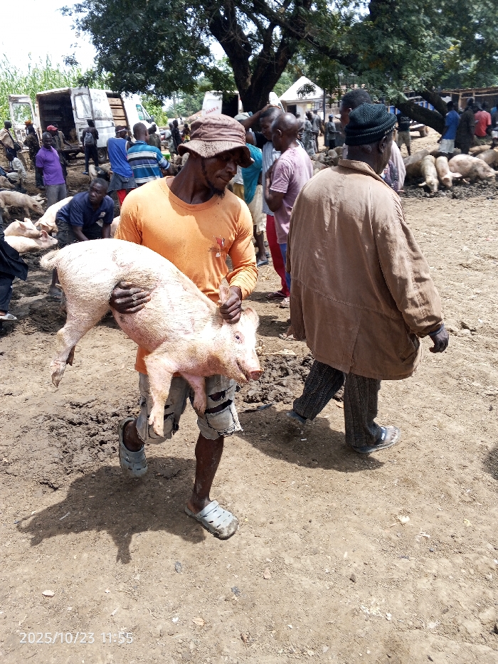- "This image, taken on 2025/10/23 at 11:55, depicts an active outdoor pig market in Unguwan Rimi, Nigeria" by FM-dDsul2, licensed under CC BY 4.0