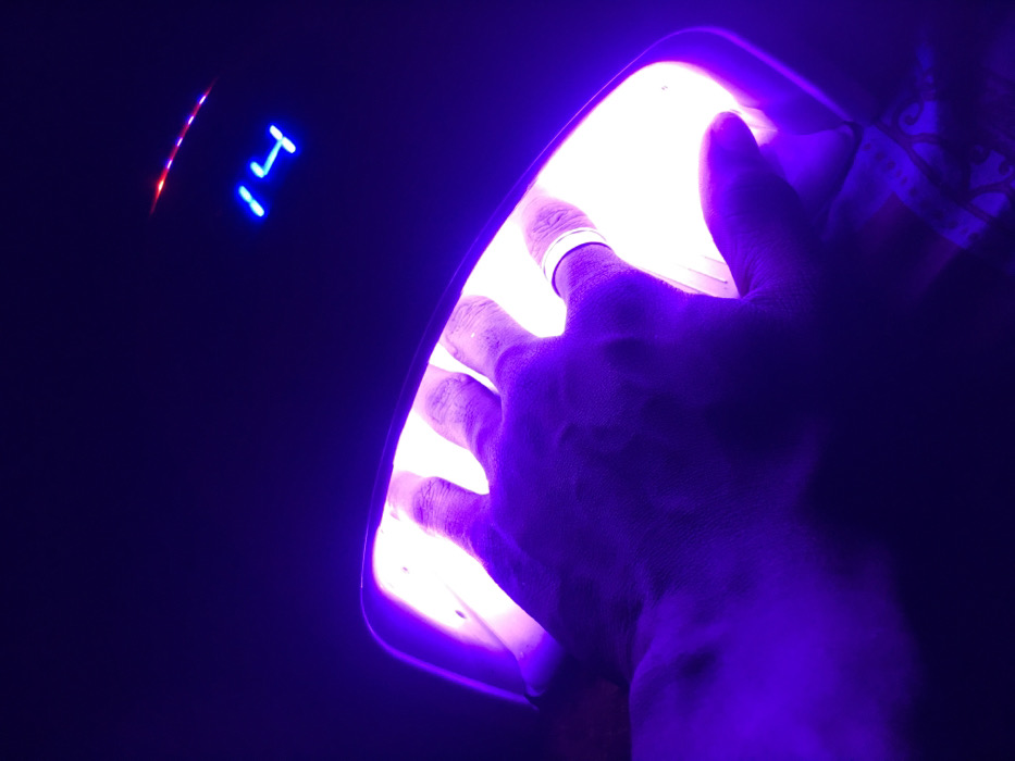 - "A hand is under a UV nail lamp" by FM-43lGe2, licensed under CC BY 4.0