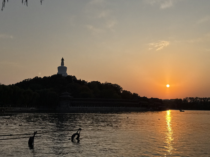 - "The image presents a sunset over Beihai Lake in Beihai Park, Xicheng District, Beijing, China" by FM-Mlchq1, licensed under CC BY 4.0