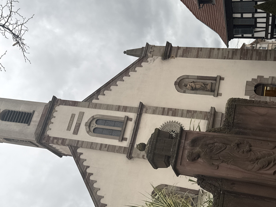 - "The image displays a detailed view of Église Saint-Joseph in Hoenheim, France, under an overcast sky" by FM-MKghF3, licensed under CC BY 4.0
