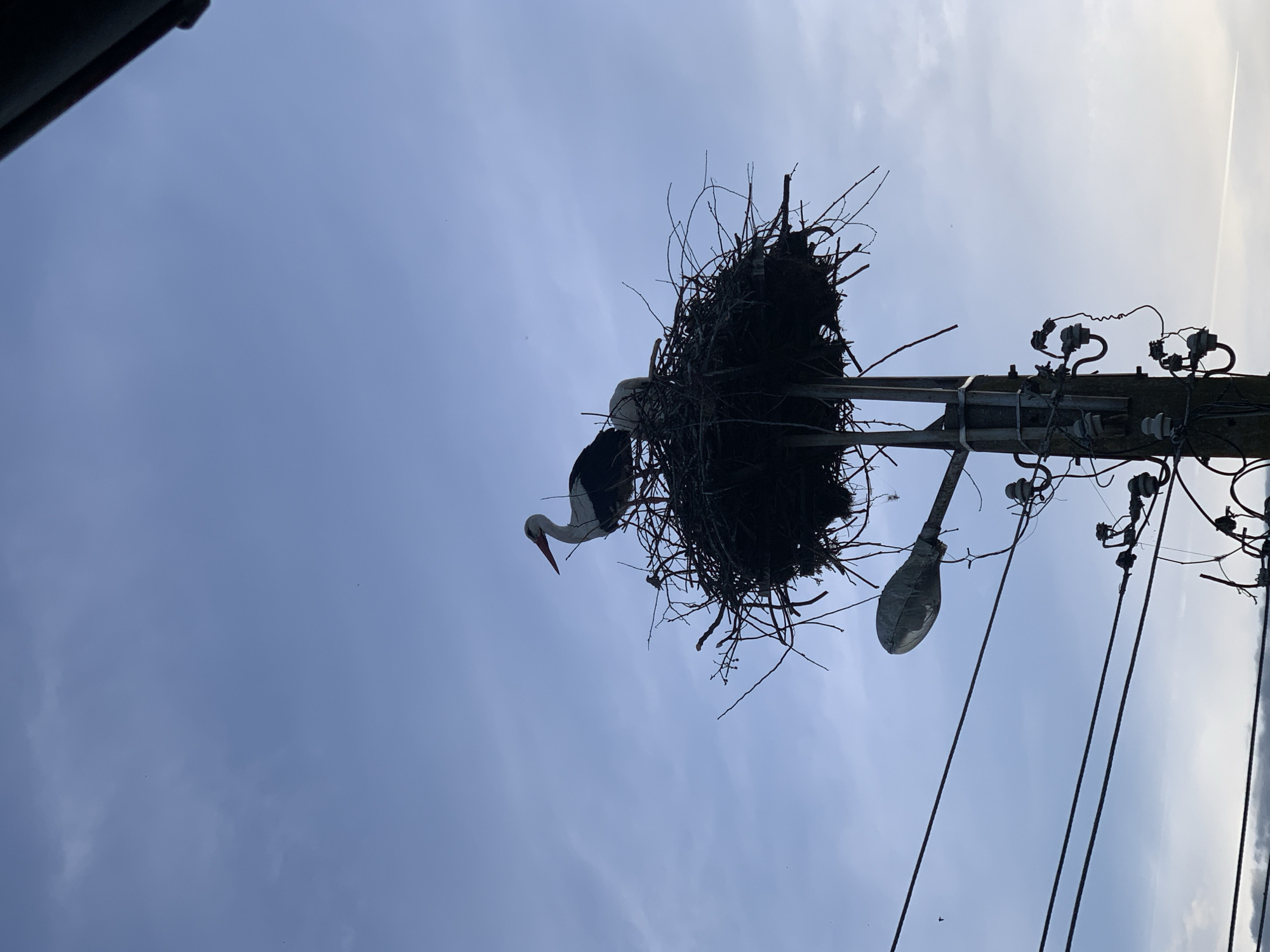 - "An eye-level shot presents a stork standing in a large nest atop a utility pole" by FM-nVXhH2, licensed under CC BY 4.0