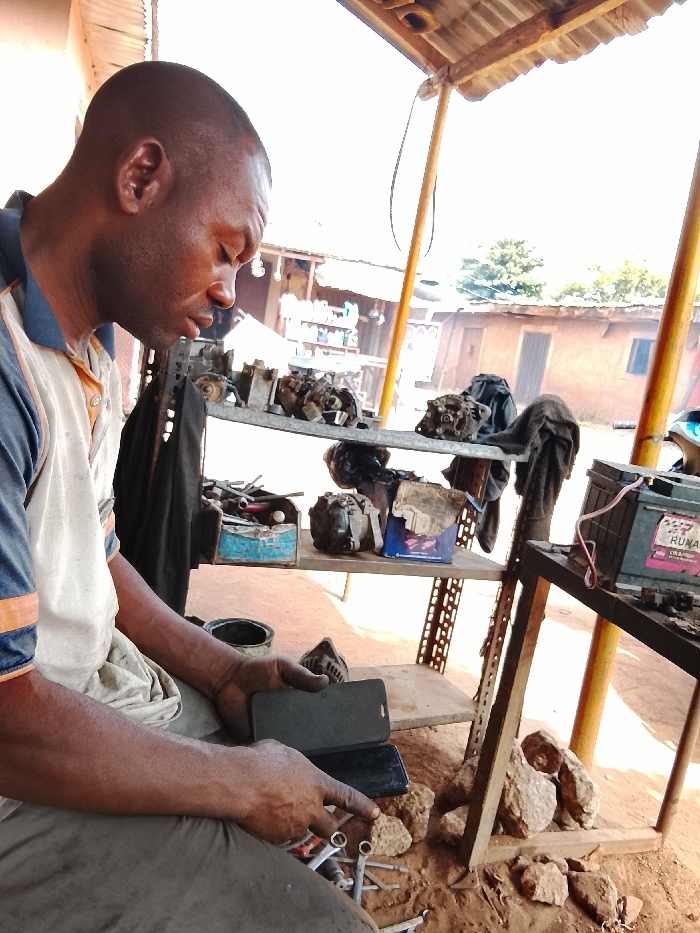 The image captures an outdoor workshop scene in the city of Barden Yana, Nigeria
