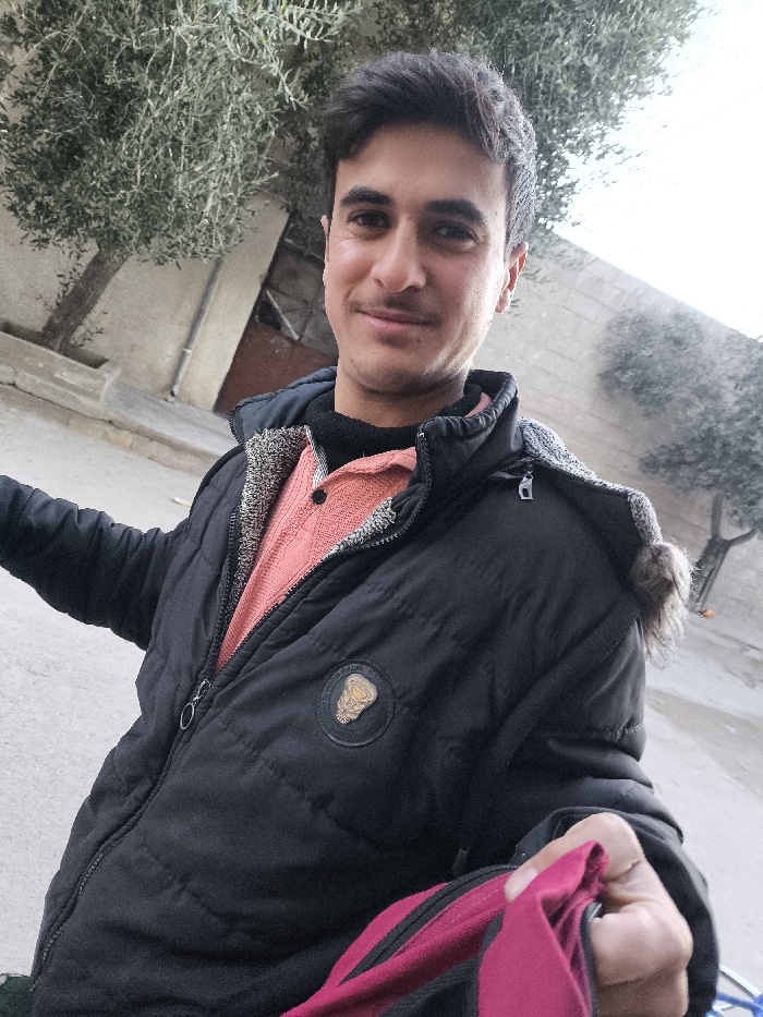 A young adult male is depicted in a close-up outdoor portrait in Jirud, Syria