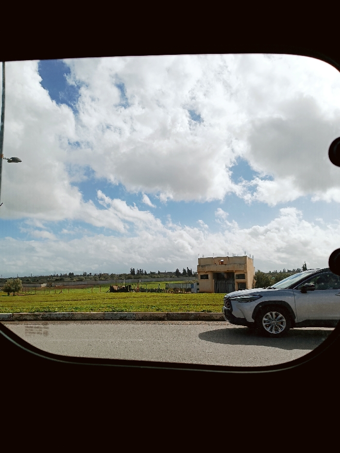 - "The image depicts a roadside scene under a partly cloudy blue sky, viewed through a dark, irregularly shaped frame, likely a vehicle window" by FM-8A33E3, licensed under CC BY 4.0