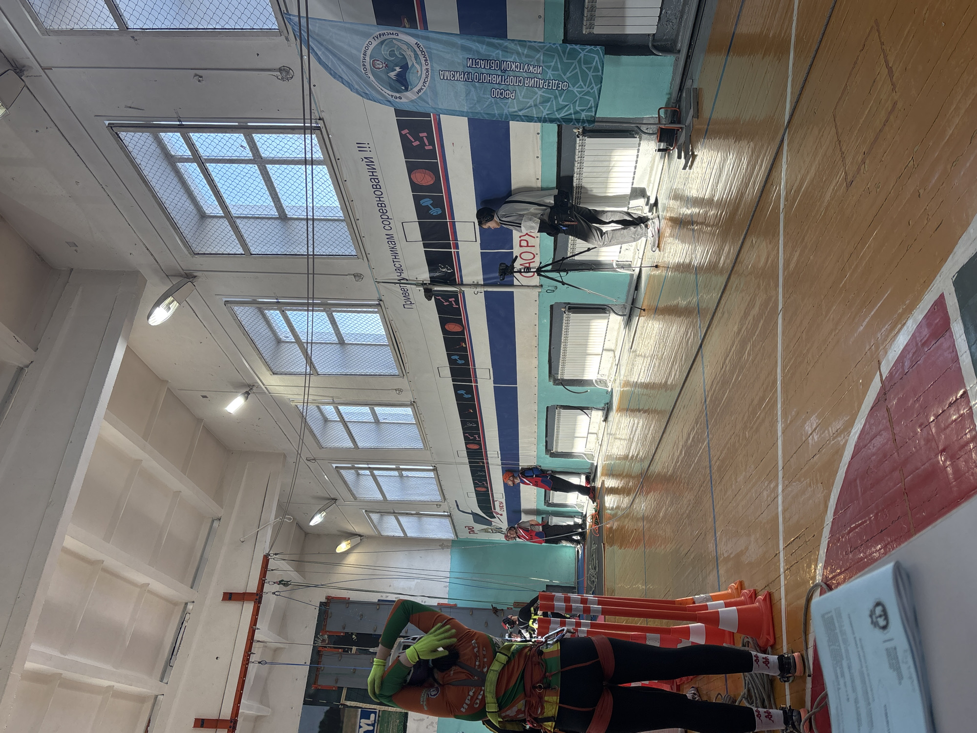 This image depicts an indoor sports hall in Tayshet, Russia, functioning as a venue for a sports tourism event