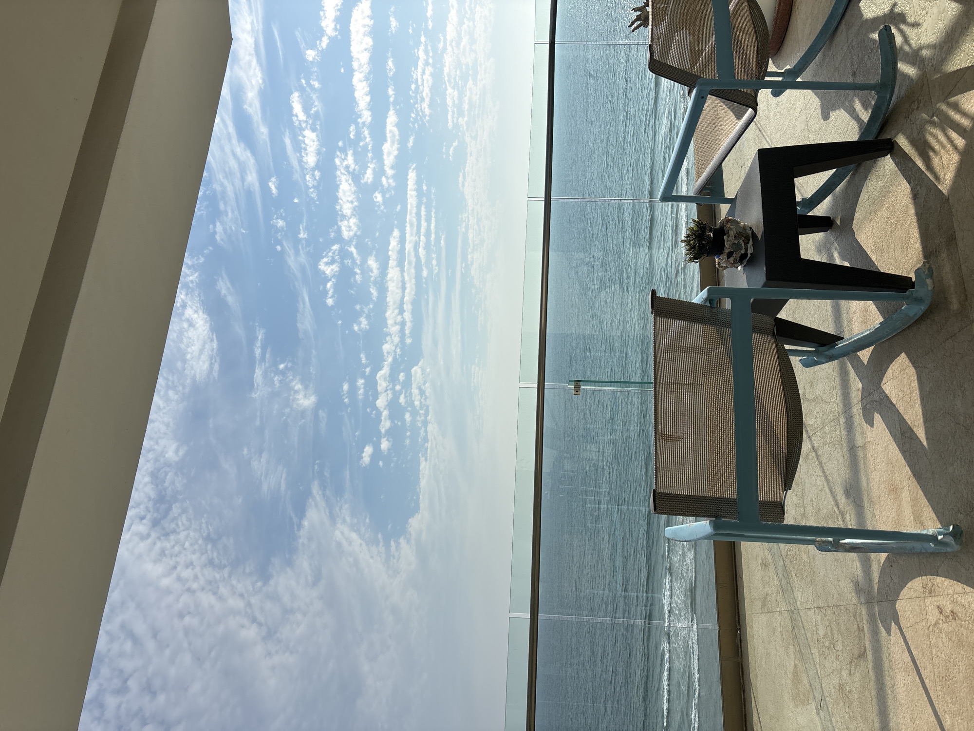 n outdoor balcony scene, likely in Acapulco, Mexico, given the coastal view