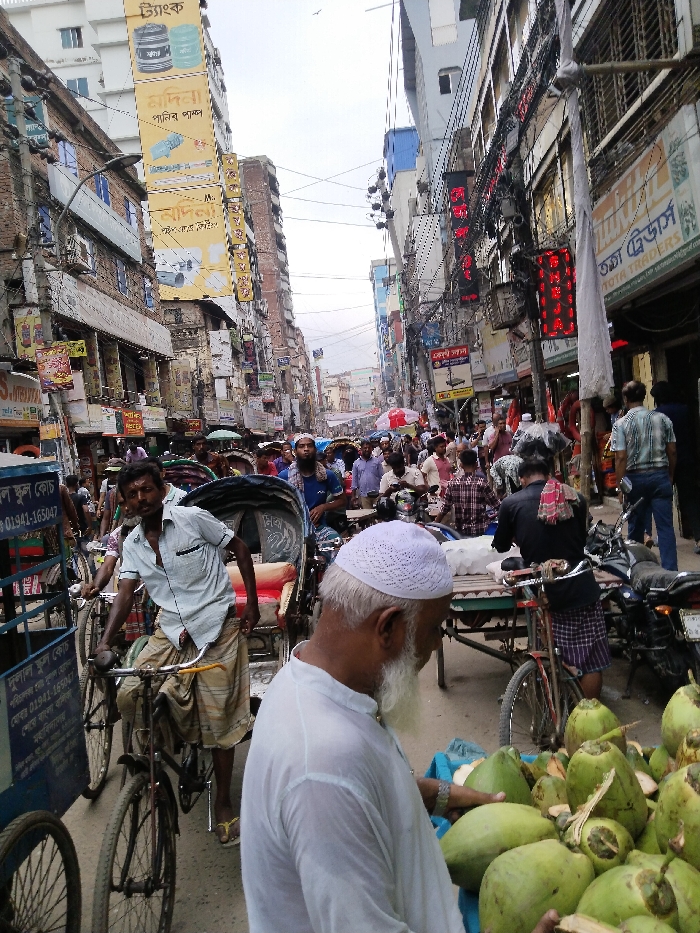 - "The scene is a bustling street market in Dhaka, Bangladesh, located at 23" by FM-WsWOT2, licensed under CC BY 4.0
